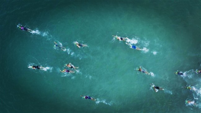The race didn’t start so well for me, a few sleepless nights meant I felt less than lively on the start line. Nonetheless I jostled for a good position in the rolling start and swam hard to hopefully jump on some feet. Unfortunately those around me were not swimming that fast and I swam alone or overtook a few previous waves until my training buddy Pierre came up and I managed to stick on his feet until the beach run and lagoon swim.